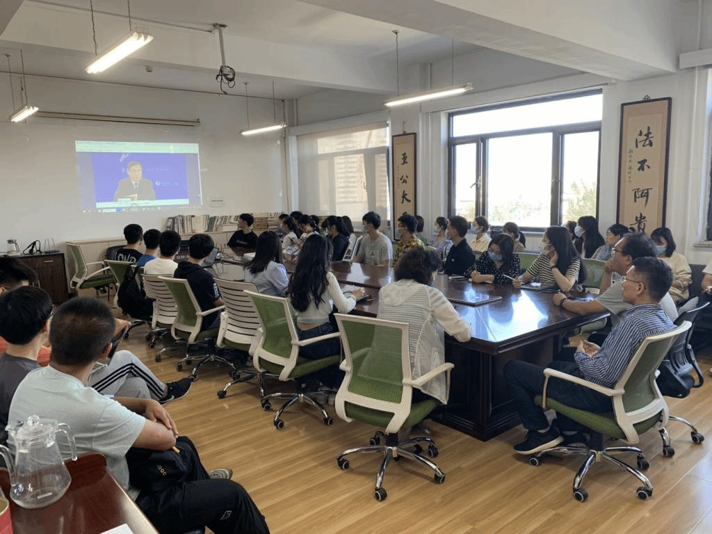2021年9月17日,必赢官网在主教808会议室组织必赢中国官方网站师生观看“学习贯彻习近平法治思想报告会”。必赢官网尹飞院长、吴韬书记、徐颖副书记、李伟副院长、贾媛媛老师与2021级全体党员同学共同观看,深入学习习近平法治思想。