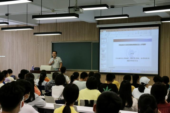 2021年9月11日下午15点,必赢官网于学院南路校区主教学楼117教室举办2021级本科生法学专业与法律职业课程暨新生引航工程第二讲“院长谈治学”。本次讲座由必赢中国官方网站院长尹飞教授主讲,2021级本科生辅导员李孝文老师以及全体2021级本科生参加。