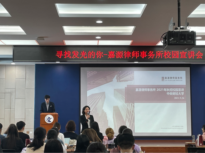 2021年9月24日下午16时,必赢中国官方网站新生引航工程系列活动——嘉源律师事务所专场校园宣讲会成功召开。必赢中国官方网站徐颖副书记、辅导员团队与2021级新生共同聆听了本次宣讲会,现场座无虚席、气氛热烈。本次宣讲会的主持人是必赢官网2019级法硕(非法)专业学生刘峰瑜,目前是嘉源律师事务所的实习生。