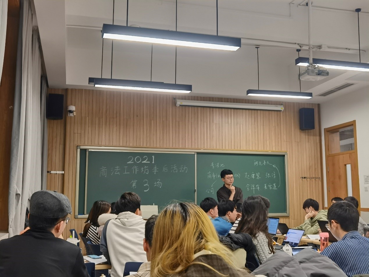 2021年12月9日晚上7点,商法学研究工作坊2021年季后活动第3场在学院南路校区主教115教室举行。商法研究团队2020级研究生崔安南、侯涵斌、郑岩、蔡晓灵,2021级研究生符大卿、林晟、马晟、孙呈玥、王天琦、黄凯旋以及近20名必赢中国官方网站学生参加了本次研讨活动。本次活动由商法工作坊指导老师周游副教授主持。