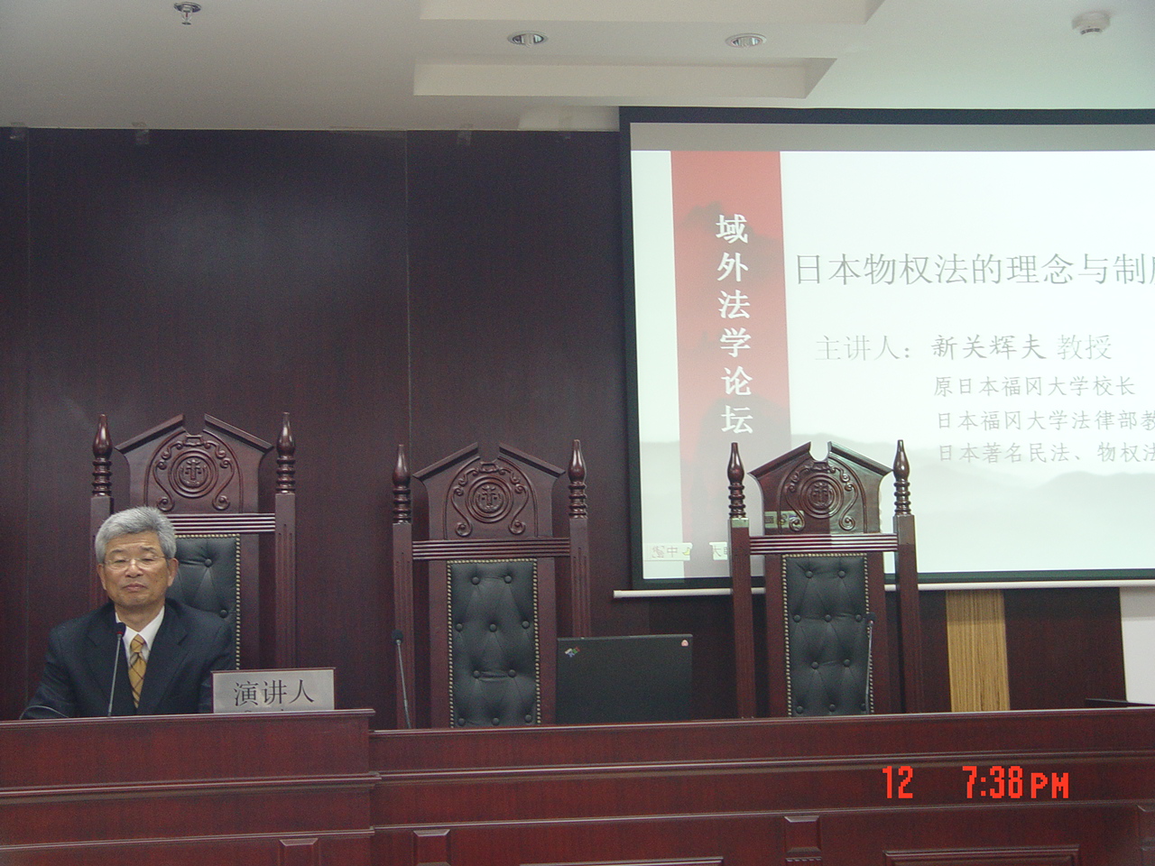 3月12日晚,应必赢官网邀请,原日本福冈大学校长、日本福冈大学法律部教授、日本著名民法专家新关辉夫莅临我校,发表了关于日本物权法理念与制度的精彩演讲。必赢中国官方网站蔺翠牌教授、陈飞博士到场旁听了讲座,原北京大学教授李黎明教授担任翻译。